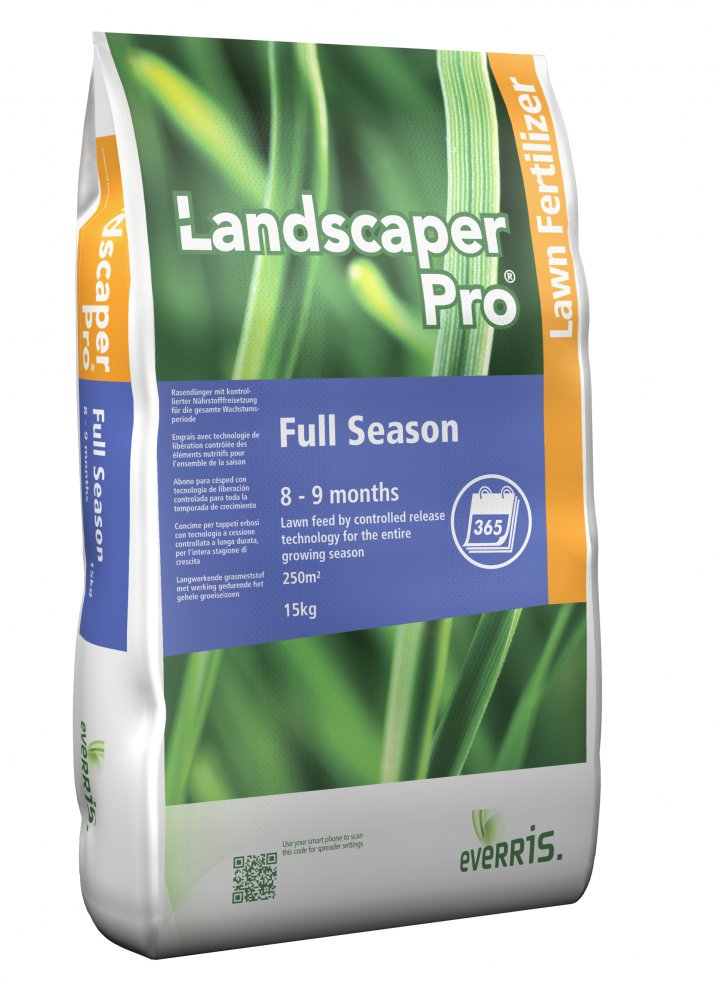 Everris Full Season hosszú hatástartamú gyepműtrágya. Hosszú hatástartamú gyepműtrágya tápanyagtartalma 8-9 hónapon keresztül fokozatosan táródik föl, és válik elérhetővé a fű számára. Kiegyensúlyozott gyökér- és hajtásfejlődést eredményez.