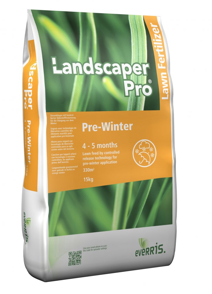 Everris Pre-Winter őszi-téli felkészítő gyepműtrágya. Megfelelő mennyiségű és arányú tápanyaggal látja el a gyepet a téli felkészüléshez. Elegendő mennyiségű tápanyagot tartalmaz a gyors tavaszi induláshoz is. Nitrogén-hatóanyagai csak akkor válnak a növény számára hozzáférhetővé, ha arra az időjárási körülmények is megfelelnek. 4-5 hónapos hatástartama segít abban, hogy a gyep jó kondícióba kerüljön, és elviselje a tél okozta stresszt. Magas káliumtartalma szövetszilárdító hatású, szabályozza a növény sejtjeinek vízháztartását.
