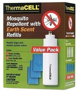 Az összes ThermaCell készülékhez (hordozható készülékek, lámpás, fáklya) használható gazdaságos kiszerelésű utántöltő csomag. A "Vadász" utántöltő lapkák, a vadak kifinomult szaglásának a megtévesztése érdekében dohos, korhadt falevél illatú, mely elfedi az ember által kibocsátott illatanyagokat vadászat közben.Egy palacknyi folyékony gáz 12 órán keresztül, egy lapocska 4 órán át használható (a csomag tartalma 4 palack + 12 lapocska). Az utántöltő csomag hosszú időn keresztül tárolható, a megkezdett gázpatron, riasztólap a készülékben hagyható (hűvös, száraz helyen tárolandó). Miután szakaszosan üzemeltethető riasztóról van szó, nem kell egy lapocskát azonnal elhasználni. Például ha esténként csak egy órán keresztül tart a szúnyoginvázió, a készülék ezt követően kikapcsolható, s egy lapocska így négy estére elegendő. A lapocskában található szintetikus hatóanyag neve D-Allethrin, mely egy természetes inzekticidnek, a Pyrethrin-nek felel meg (melyet a krizanténból vonják ki!).